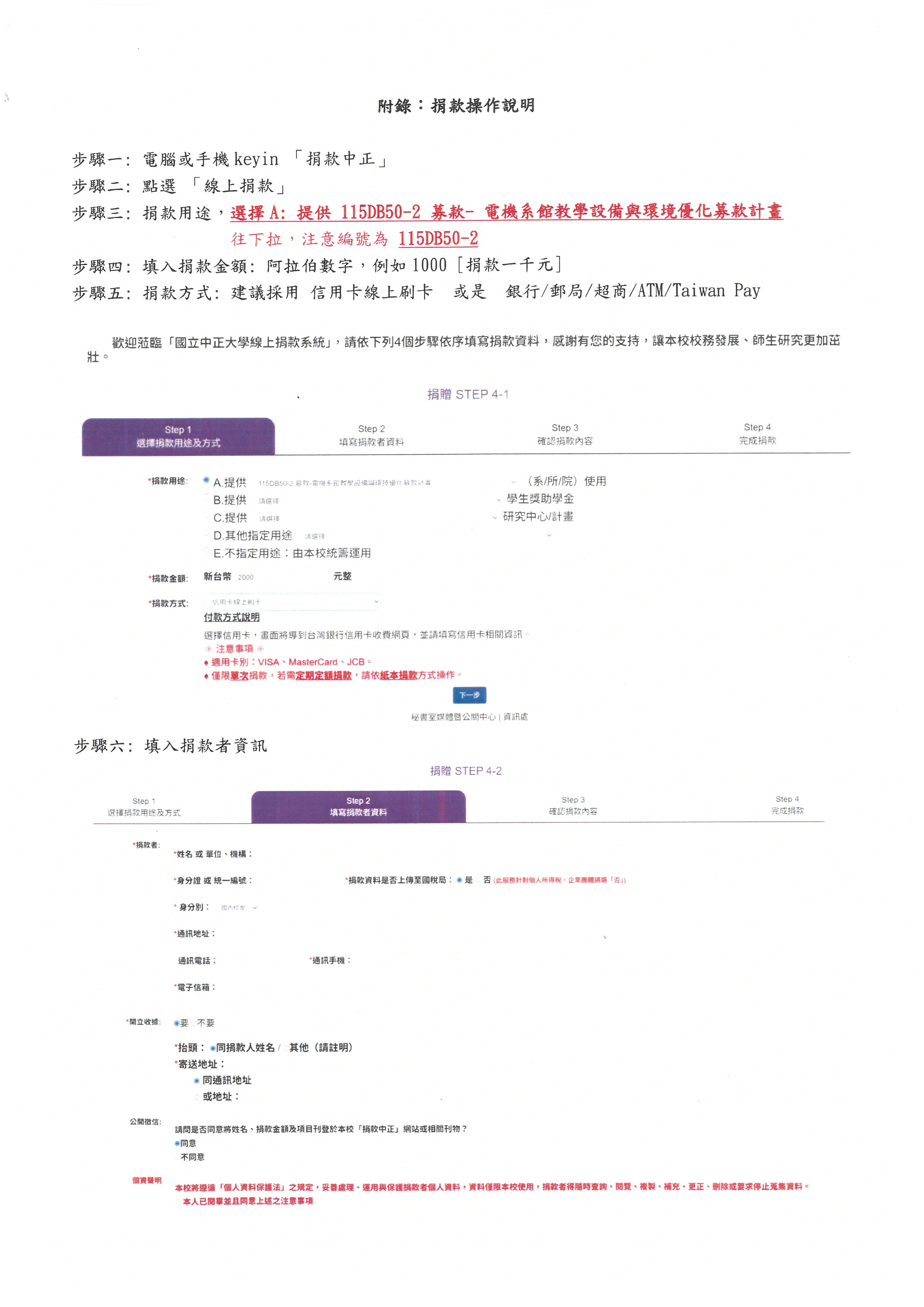 隨信附上捐款方式說明。本次募款期間從 2026年1月開始,達到目標即停止募款。活動結束后,我們將於系網公告捐款芳名錄以表謝忱,並定期更新修繕成果供您檢視。系館的大門永遠為您敞開,誠摯邀請您有空回來走走,見證系上的改變。